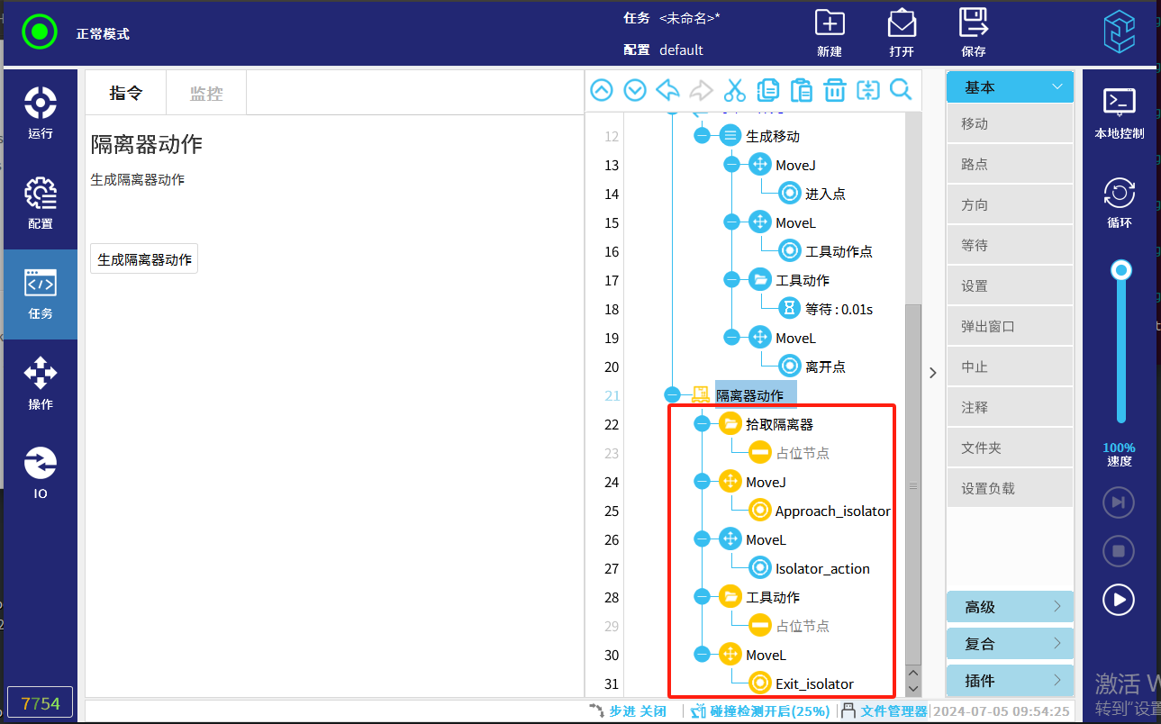1. ‘拾取隔离器’:此节点需要客户根据现场情况设置动作。