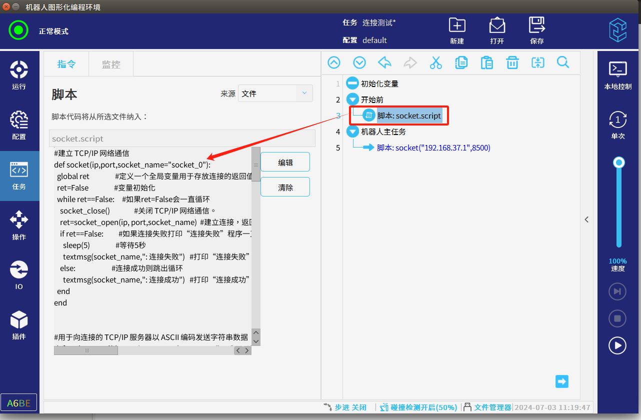 本篇文章介绍CS机器人作客户端在使用脚本与服务器做socket通讯时怎么样循环判断连接,通讯断开后怎么样自动连接,以下内容要求机器人应用2.12及以上