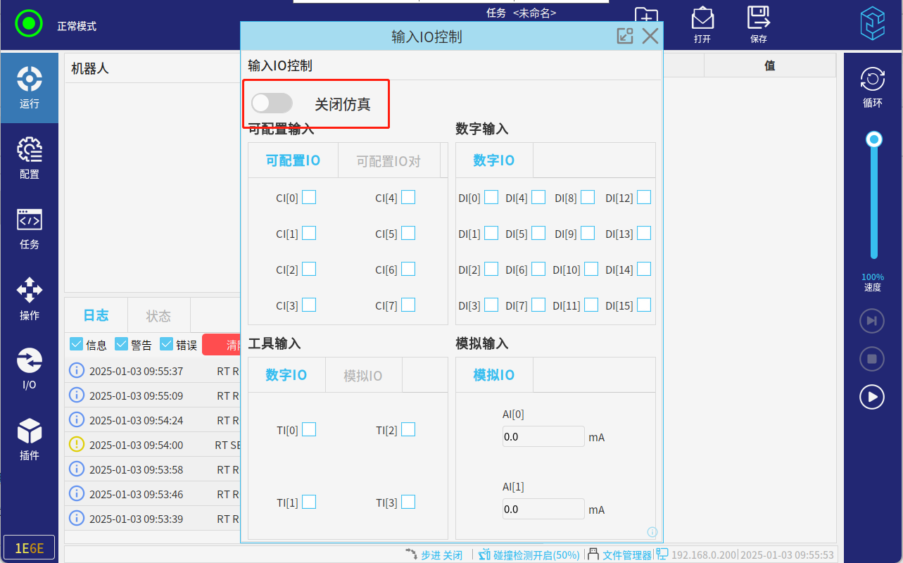 等指令,可以通过模拟IO输入控制插件,来模拟输入的信号,以此满足程序运行的条件。
