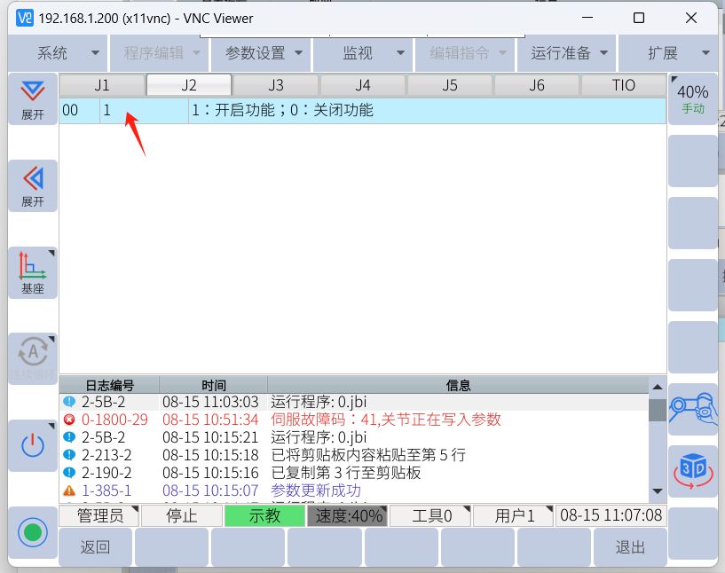2. 找到003D,一般抖动牵连的关节是J2和J3较多,可仅打开这两个关节的震动抑制功能。
