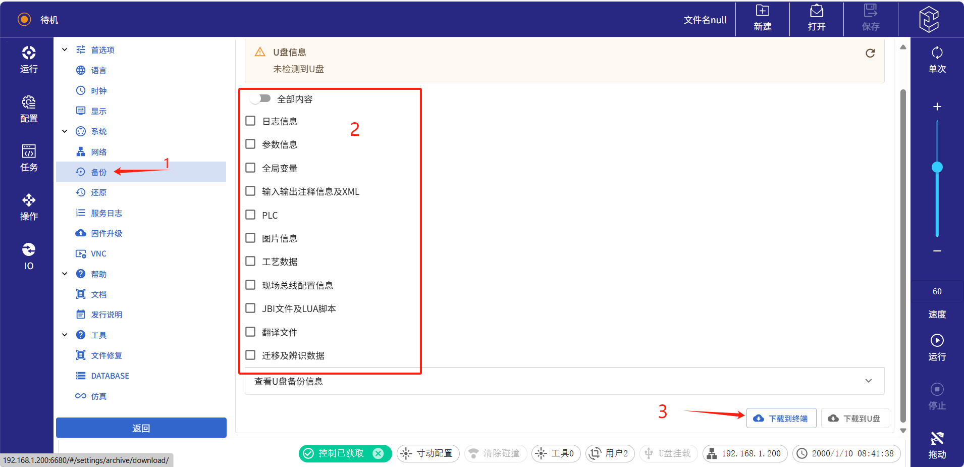 ● 备份:点击右上角“打开”,进入文件页面。如下图显示JBI文件,找到对应JBI文件名,鼠标右键选择下载。