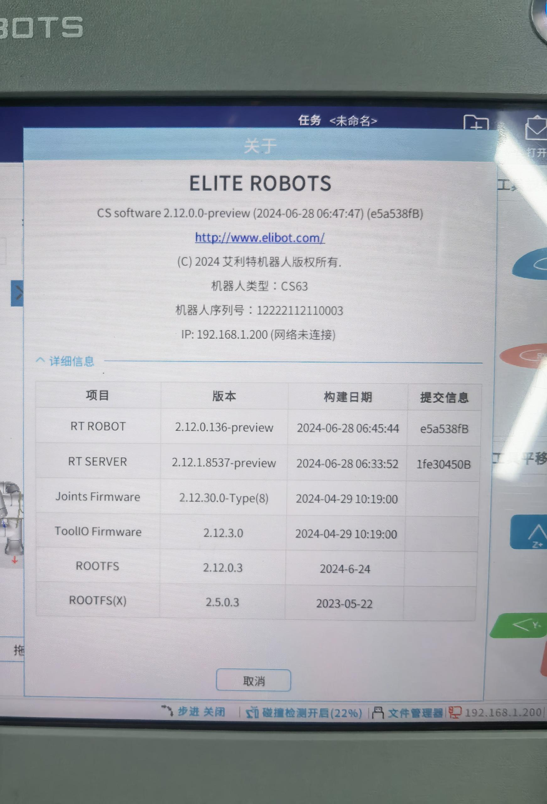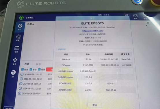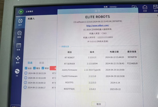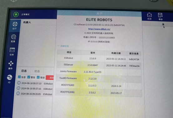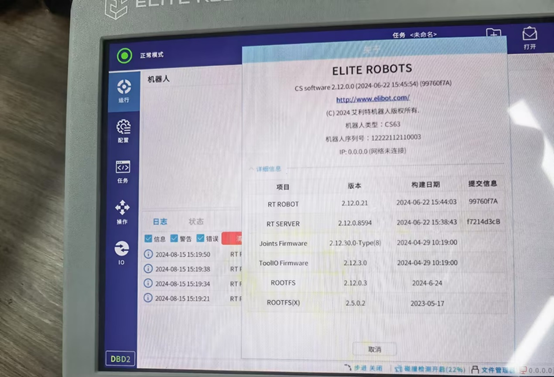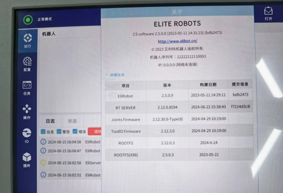 除了X86系统直接对应的ROOTFS(X)发生了改变,RT ROBOT和RT SERVER也被刷新了。理论上,升级x86,会影响java所有的程序,包括上位机软件版本,本地安装的插件,保存的任务配置文件等。早期的x86版本中,没有完整的应用升级包,所以升级完x86,只有上位机版本(EliRobot新版本里叫RT ROBOT)会改变,下位机版本还是升级之前的版本。后续新版本的X86,包含了完整的应用升级包,所以新版本x86升级完后,EliRobot和EliServer版本都会改变
