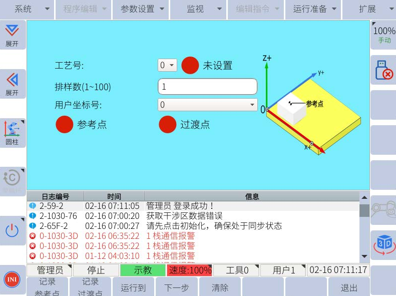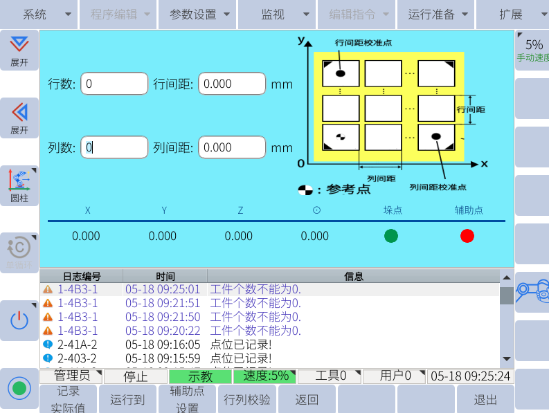 1. 码垛工艺中所有点位的计算均在设定的用户(托盘)坐标系下进行,因此在设定用户坐
