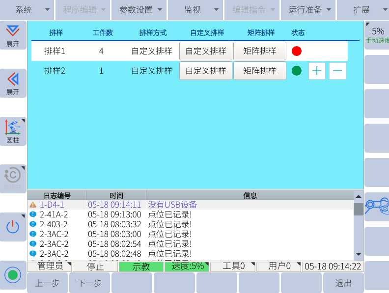 7.  自定义排样则需要自己手动示教各个点位。