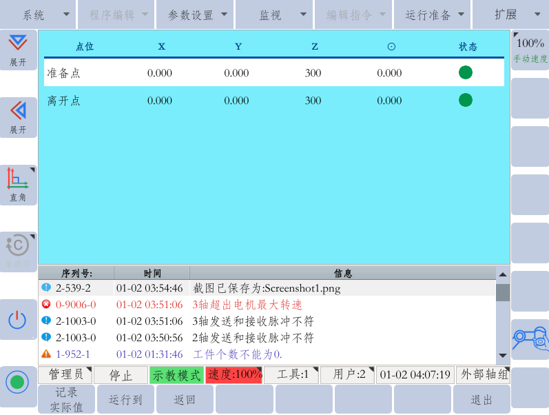 8.  辅助点分为准备点和离开点,就是我们一般所说的放料位上方位。只需要设置好Z方向的参数。设置好后,会自己计算出垛点的上方位,进行偏移运动。以毫米为单位。