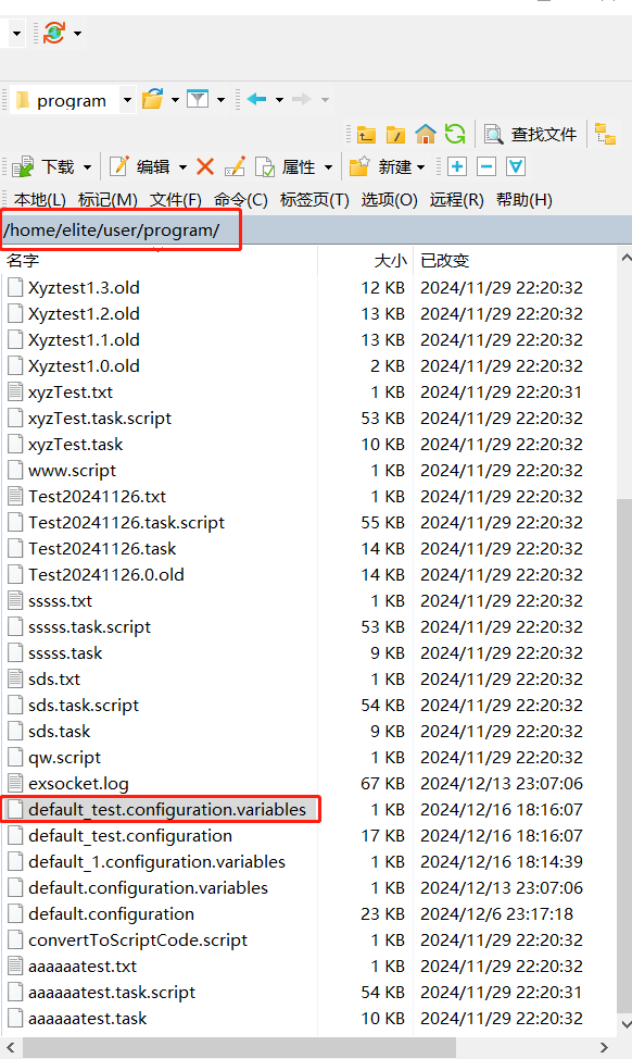 通过传输软件,打开文件路径找到配置全局变量文件default_test.configuration.variables