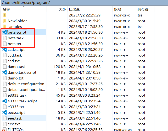 2.  .用FTP软件打开program文件夹,选择对应程序的task,.script,.txt(便于分析),右键点击下载,选好目录,也可以直接将需要下载的程序夹拖拽至已经打开的文件夹