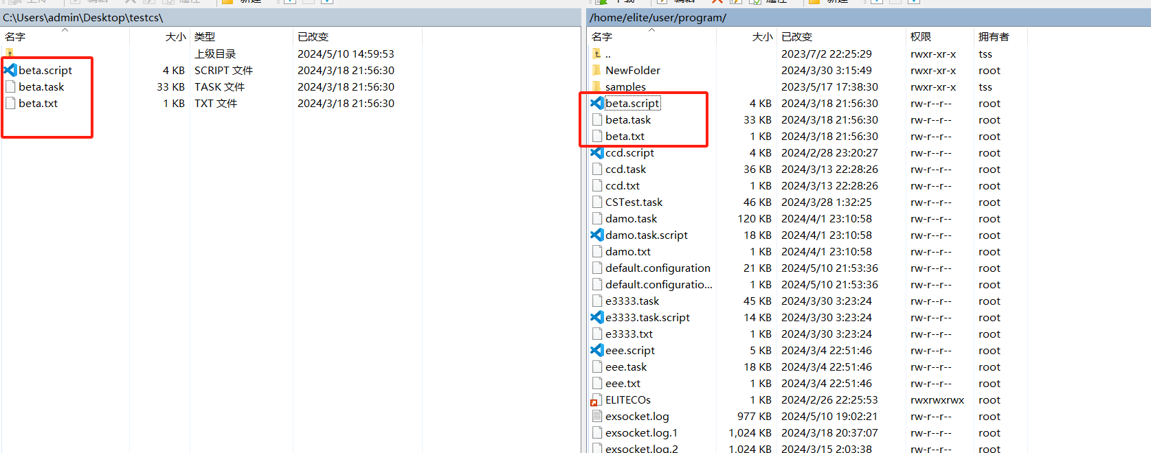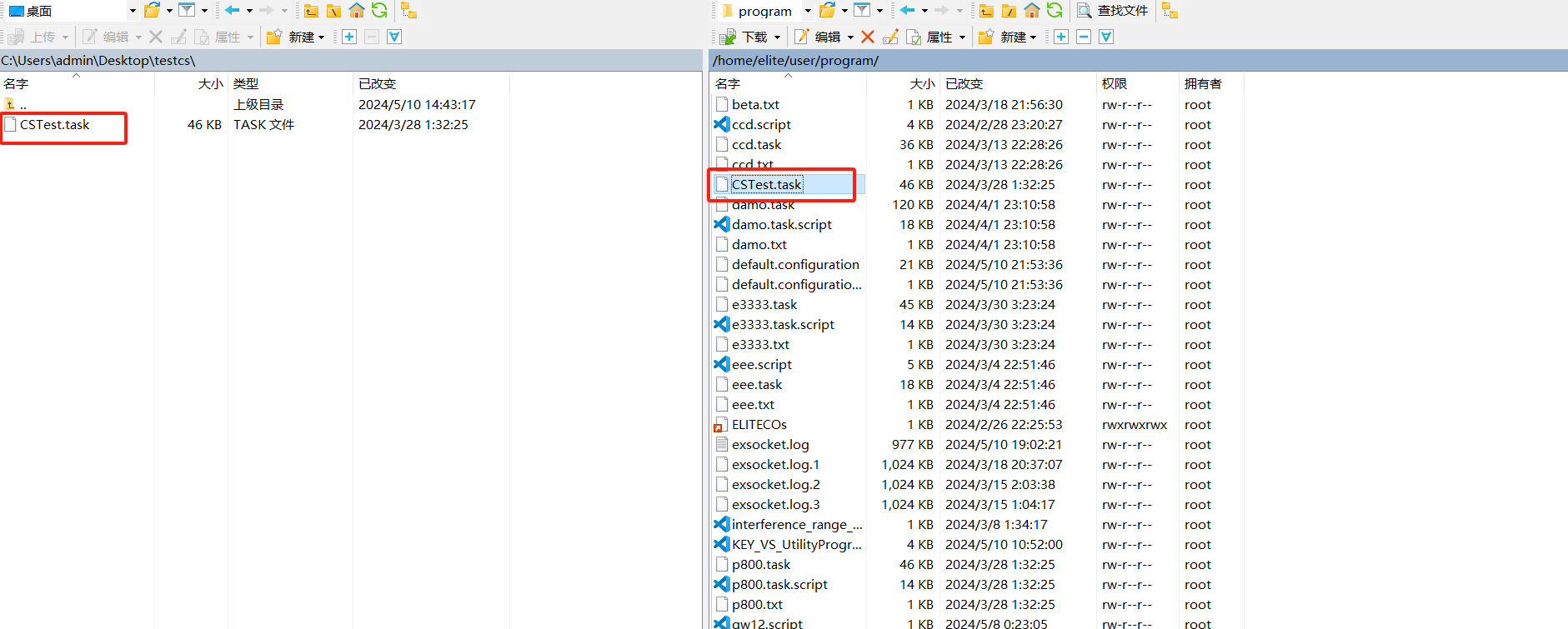 1.用FTP软件打开program文件夹,在左侧打开需要上传的程序文件.TASK,不需要上传.script和.txt,上传之后,就会发现会自己生 成.script和.txt