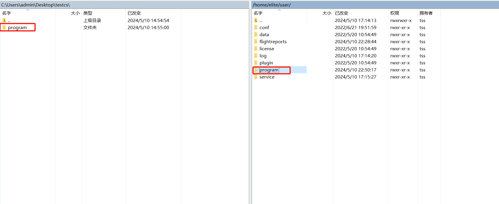 利用FTP软件连接成功之后,在机器人文件系统内,按照下图目录找到program文件夹