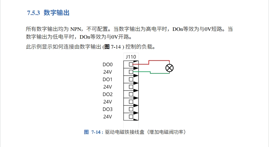 DI口为24V,COM口为0V;所以需要给DI口输入0V,机器人得到信号。简单理解DI口与COM口是一个常开型开关,短接到一起即可得到信号。