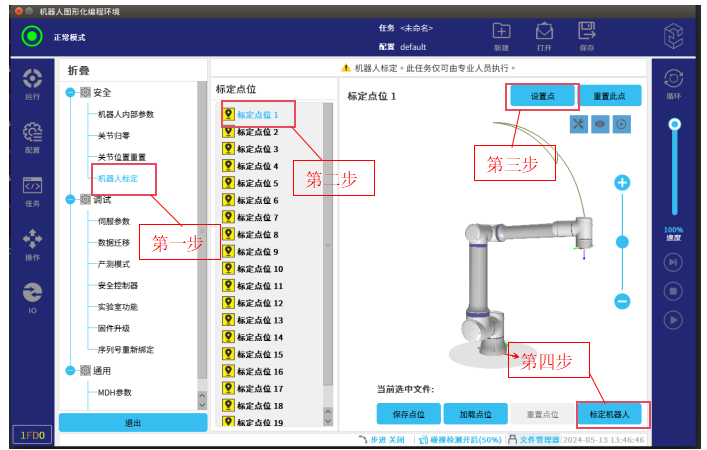 第四步:将20个点位都设置好了之后,点击“标定机器人”即可,这样机器人标定就完 成了