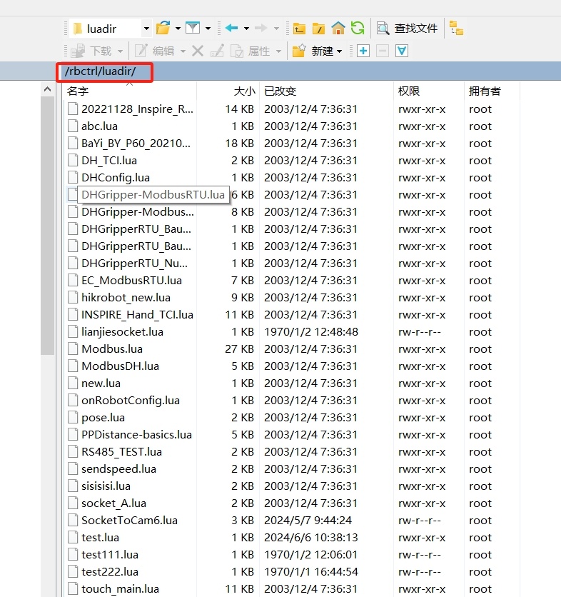 lua脚本上传下载和jbi上传下载方式一致。(lua修改时没有不受示教器程序是否打开的影响)
