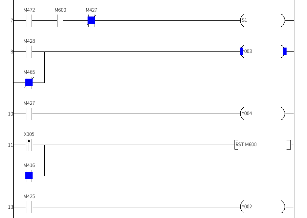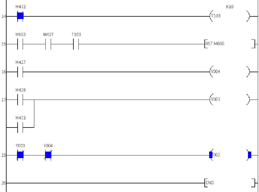 第 15 行:M602有信号,M427(运行状态)有信号且T103计时到达复位M600。