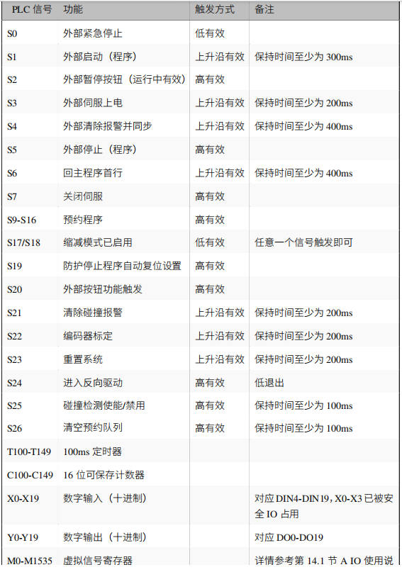 ②S1等代表线圈,具体信号映射可见用户手册--第十章用户plc的表10-1